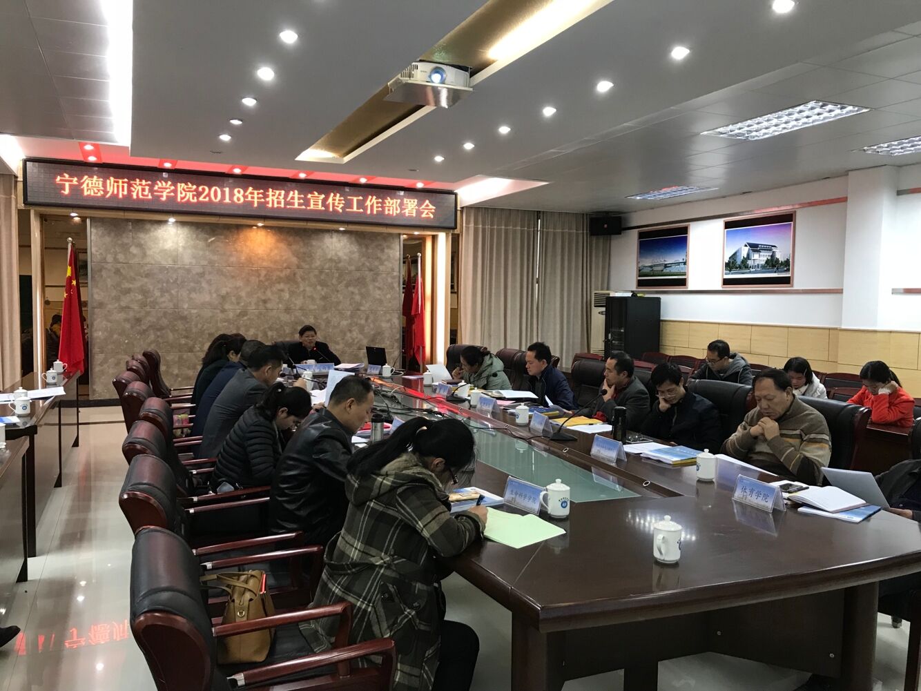 119日下午,威尼斯官网在东侨校区求知楼A308会议室召开2018年招生宣传工作部署会,副校长谢向东主持会议并讲话,教务处、宣传部、团委部门负责人,各二级学院负责人、教学秘书参加会议。