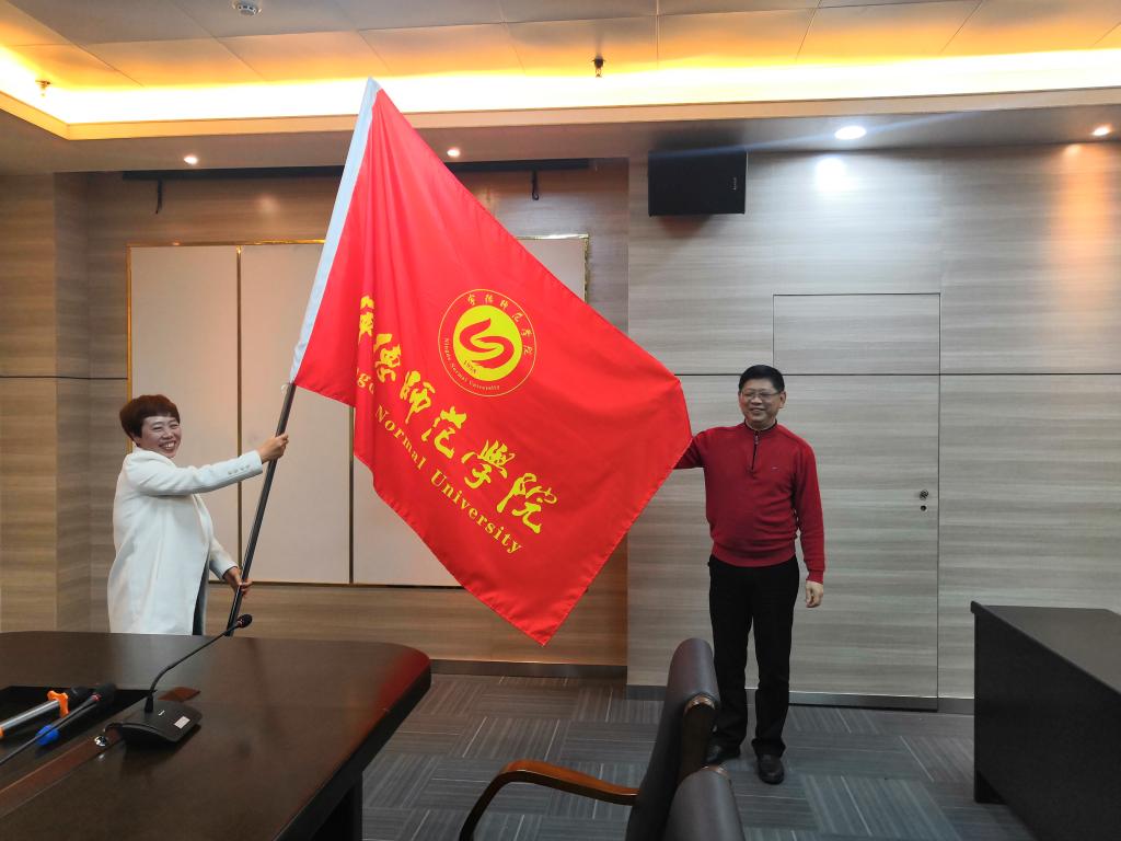 谢向东作总结讲话并为参赛团队授旗。他强调,全省师范生教学技能大赛是师生们施展本领、展示才华的舞台,也是相互交流学习的平台,鼓励参赛团队师生以饱满的精神,认真、沉着应战,赛出水平、赛出友谊、凯旋而归。